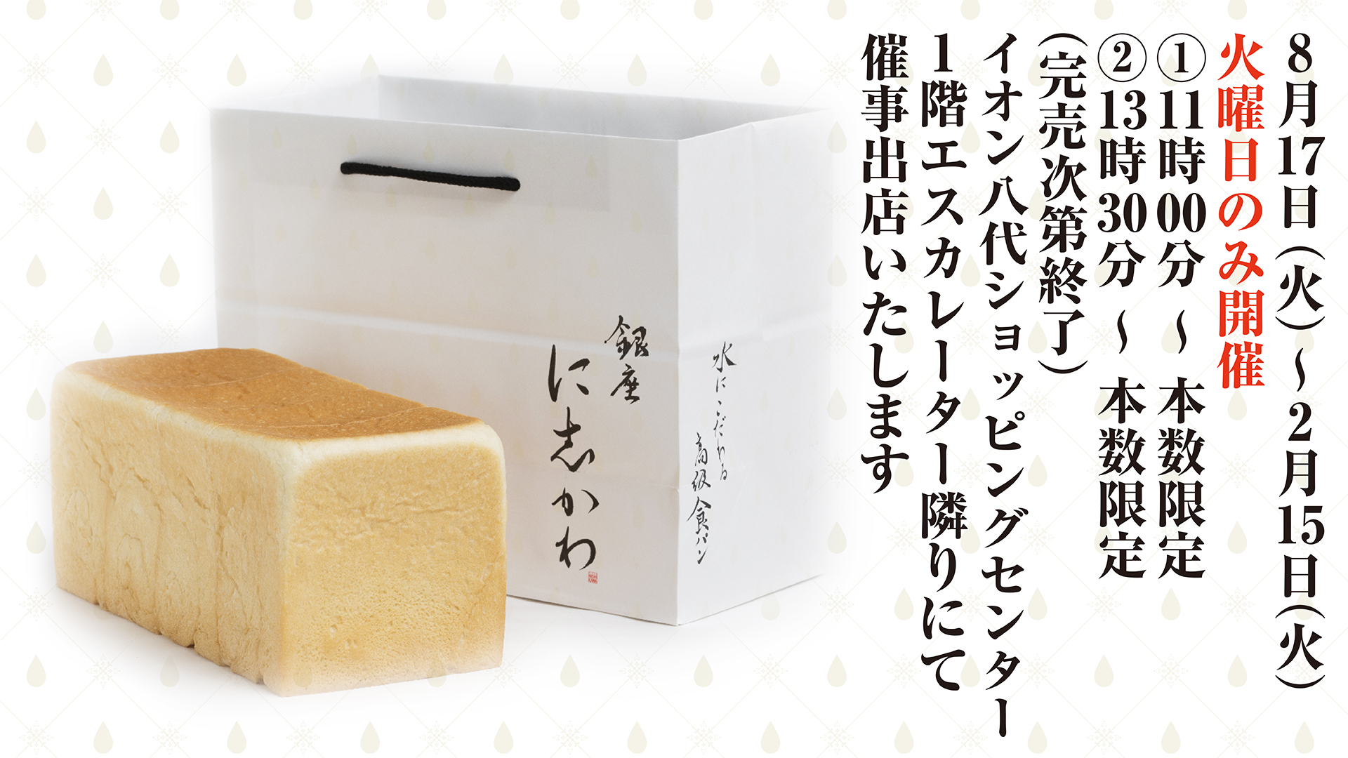 イオン八代ショッピングセンター 1階エスカレーター隣りにて8月17日(火)~ 2022年2月15日(火)の間の火曜日、銀座に志かわが催事出店いたします。