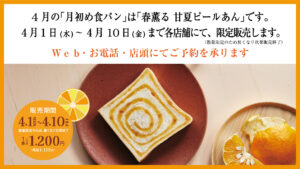 4月の「月初め食パン」は「春薫る 甘夏ピールあん」です。4月1日(水)より限定販...