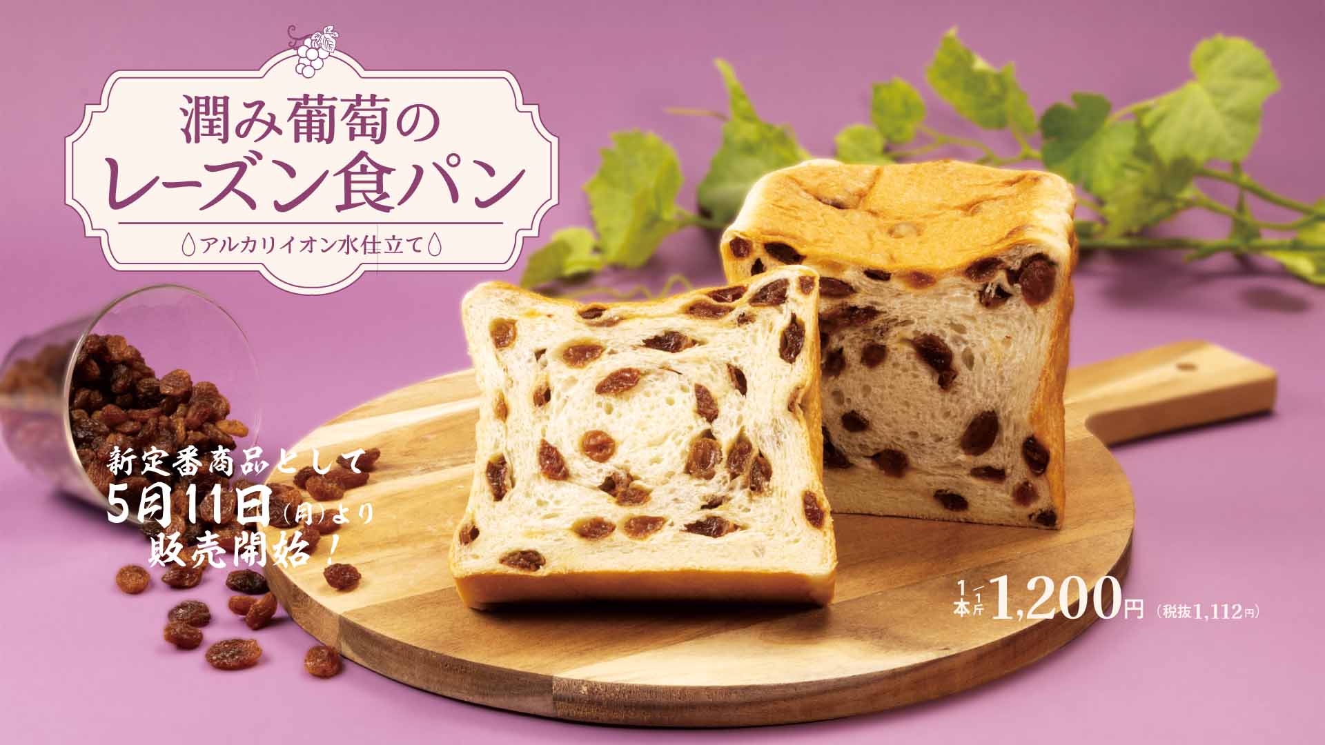 5月11日(月)より、新定番商品「潤み葡萄のレーズン食パン」販売開始