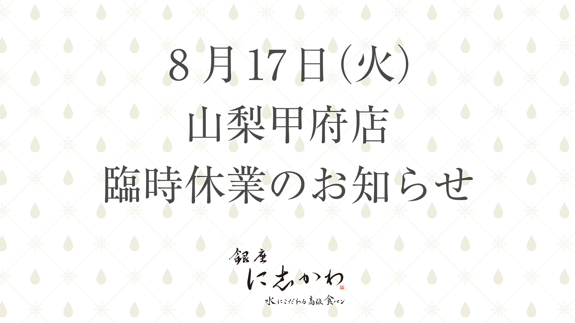 8月17日(火) 山梨甲府店の臨時休業をお知らせいたします